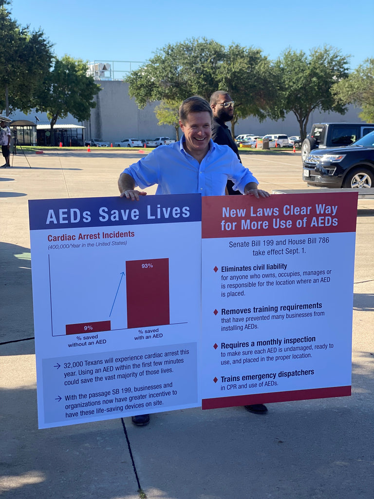 Texas' AED laws were originally written 20 years ago, shortly after Automated External Defibrillators (AEDs) were invented. Senate Bill 199 modernizes these laws to incentivize businesses to deploy AEDs, and also to ensure that AEDs are ready for use.
